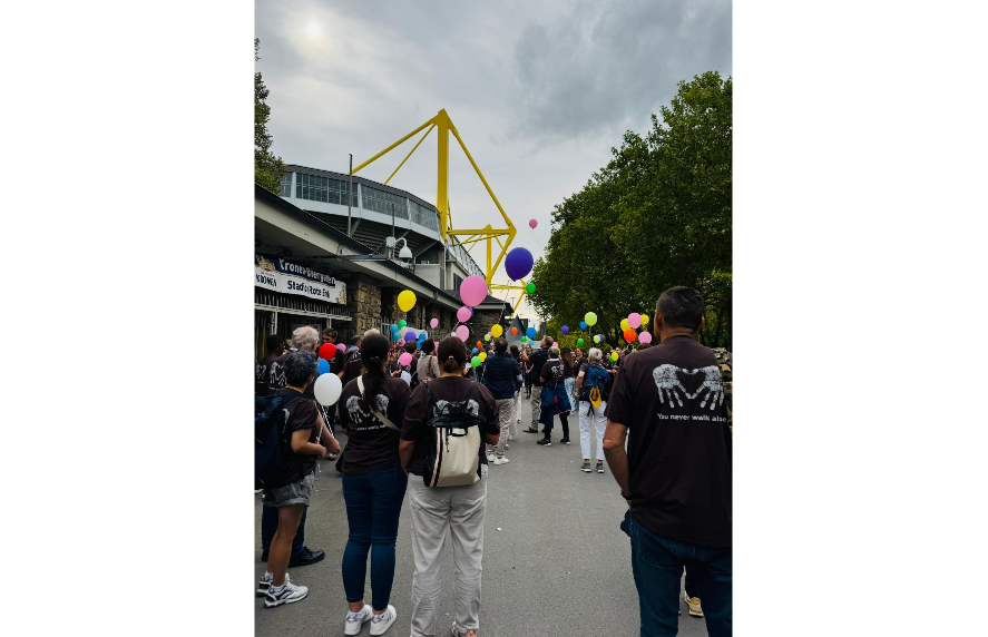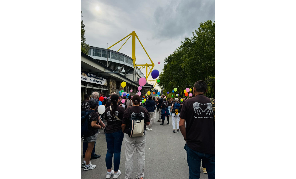 Zum zweiten Mal hat die hämatologische Station G5 des St. Johannes Hospitals Dortmund die Veranstaltung „You Never Walk Alone“ mit Nadine Vollmer-Grim und Peggy Baltrusch organisiert. Am 4. September machten sich rund 100 ehemalige und aktuelle Patient:innen, Angehörige sowie Mitarbeitende vom Stadion Rote Erde aus auf den drei kilometerlangen Weg zurück zum JoHo. Ziel der Aktion war es, Hoffnung zu vermitteln, Begegnungen zu ermöglichen und den Gemeinschaftsgedanken zu stärken.